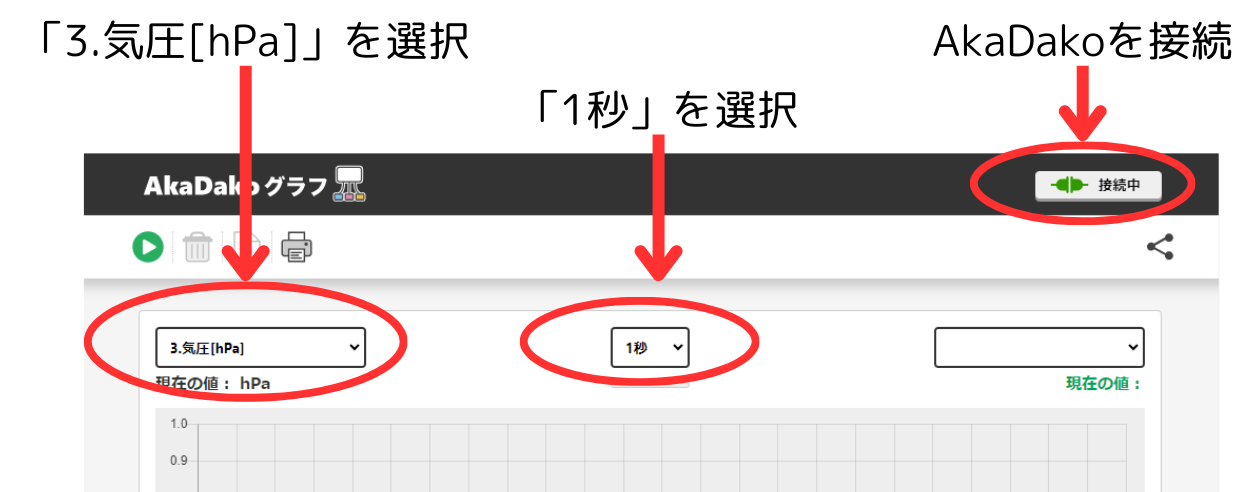AkaDako探究ツールの気圧センサーとAkaDakoグラフを使うと、気圧の変化を可視化することができます。