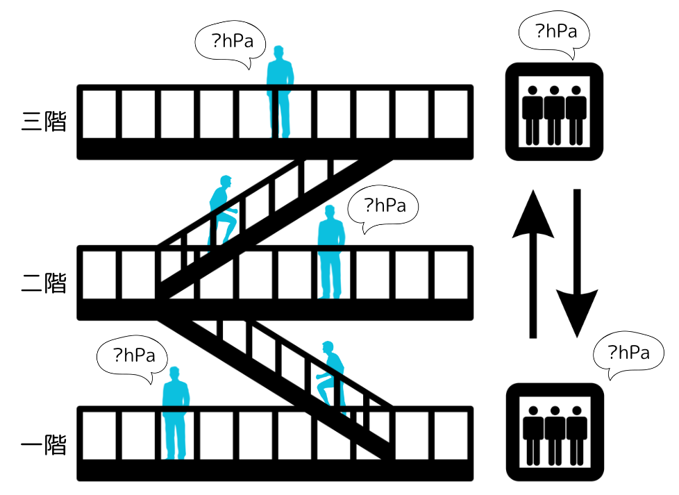 - 次にAkaDako探究ツール頭の高さまで持ち上げ、頭の高さの気圧を測定する。