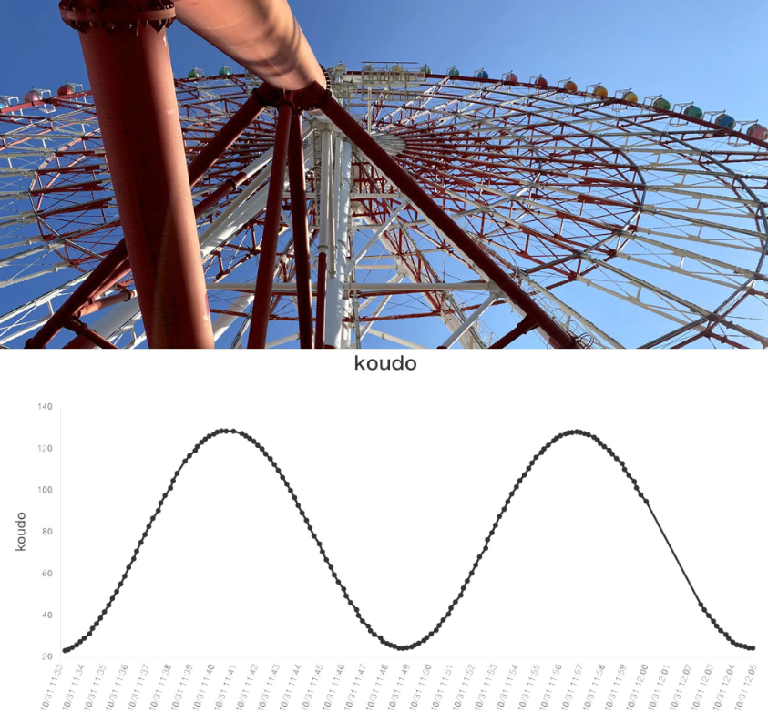 - 測定しながらエレベーター・エスカレーター・ジェットコースター・観覧車に乗ると面白いグラフを描く事ができます。